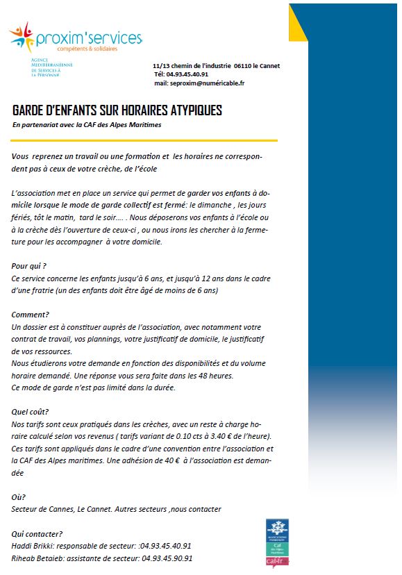 garde d'enfants à domicile. Nous avons fait le choix d'un service de